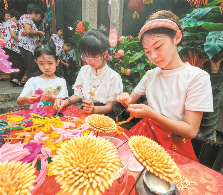 广府民俗专家、一级作家曾应枫说,这场活动充分体现了传统民俗文化的生生不息。在庙头,老一辈村民与新生代都有足够的热情投入到“拜七姐”(即乞巧活动)当中。这让寄托着人们美好期盼的“传统”在今天更加流光溢彩、熠熠生辉。