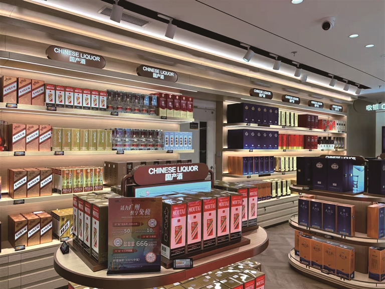 门店中庭还特设了岭南文化与中华老字号品牌体验专区,门店内的有税区域专设国潮主题馆,汇聚广州工美、深山集市等品牌,将广彩、牙雕技艺与现代设计相融合,打造兼具文化与消费属性的“可带走的手信”。
