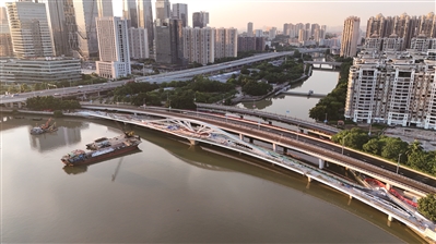 黄埔涌步行桥即将完工,它将成为继海心桥后珠江上的又一新地标。广州日报全媒体记者刘春林 通讯员新中轴公司 摄