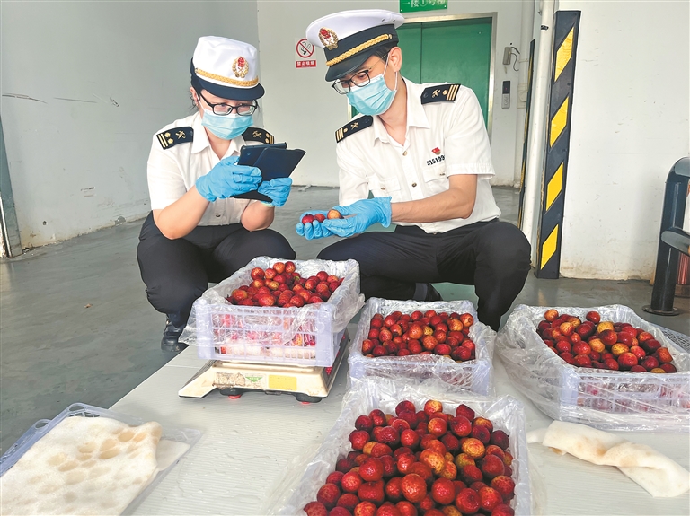 一条条措施的出台、落地,转化成从化荔枝实实在在的销量。在荔枝上市之初的6月中旬,从化区便已落实荔枝意向订单超4.7万吨,占总产量超六成。7月中旬,在广州市从化华隆果菜保鲜有限公司车间内,经广州海关所属从化海关关员现场检疫合格后,一箱箱裹着绿叶、红壳饱满的鲜荔枝整装待发,搭乘国际航班飞往世界各地。据统计,从化华隆公司等龙头企业今年共出口荔枝约4000吨、货值8500万元。