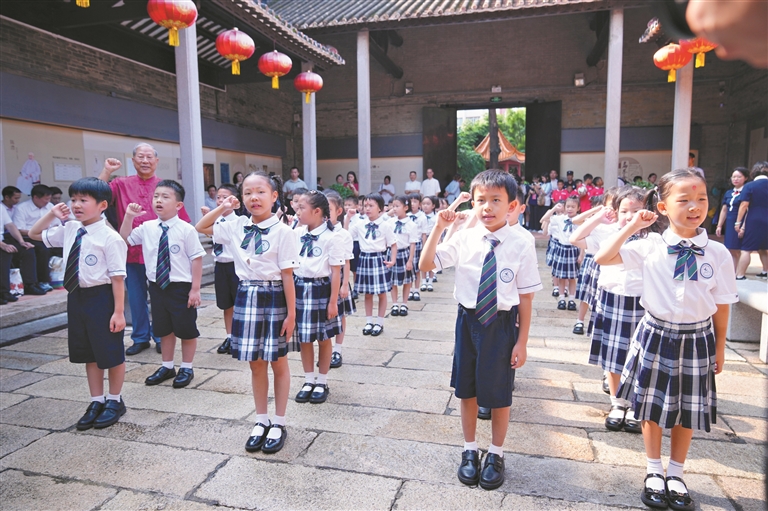 “开笔礼”是中华传统文化中对学童开始识字习礼的一种启蒙教育形式。2015年新学年开始,越秀区率先在广州市全面铺开小学一年级新生入学开笔礼活动。2025年,越秀区预计会有超过12800名一年级入学新生参加各自学校的开笔礼活动。