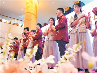 昨日在东方宾馆举行了一场甜蜜的集体婚礼。广州日报全媒体记者王燕 摄