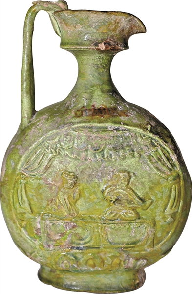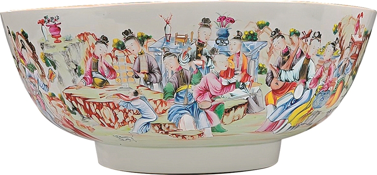 展览中,大家能看到二胡以及与之相关的“胡琴”的发展流变。在一件唐代绿釉浮雕伎乐纹胡瓶上,两面有伎乐人物,左为演唱者,右者胸前横抱一琵琶演奏。唐代胡乐文化盛行,“胡琴”一词在当时多指琵琶。另一件泉州南音二弦,与《乐书》中奚琴的形制相似,轴头与板面同向,没有现代二胡的“千斤”。清乾隆时期的广彩仕女奏乐图大碗上,女乐师们正在演奏云锣、胡琴、三弦、碰铃、钹、琵琶、拍板、鼓、笛、笙等乐器。这些东方乐器的动人身姿和发出的美妙旋律也曾深深打动当时的西方人。