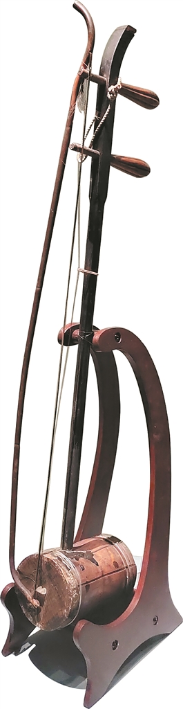 用腿夹住琴筒弹奏,高胡乐音清丽华美