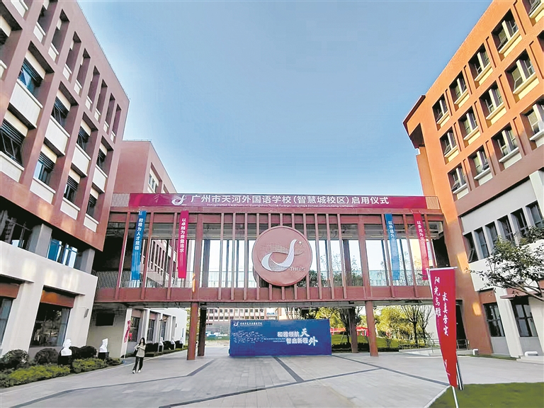 历时近两年打造,天河外国语学校智慧城校区近日落成。项目总投入达15亿元,规划布局南、北两个校区,总计将为区域提供4500个学位。南校区设初中30个班,可容纳近1500名学生;北校区设高中60个班,可满足近3000名学生就读需求。