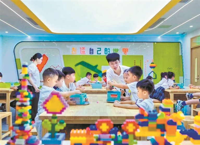 电钢琴课上,一双双稚嫩的手触碰琴键,弹奏出虽不连贯但充满欢乐的曲调;科学课上,孩子们在老师的引导下制作简易装置,感受“声音的振动力量”;乐高课堂上,五彩的积木在孩子们手中变成创意造型;心理课堂则通过趣味游戏,引导孩子们认识情绪,以积极的心态迎接小学新生活。
