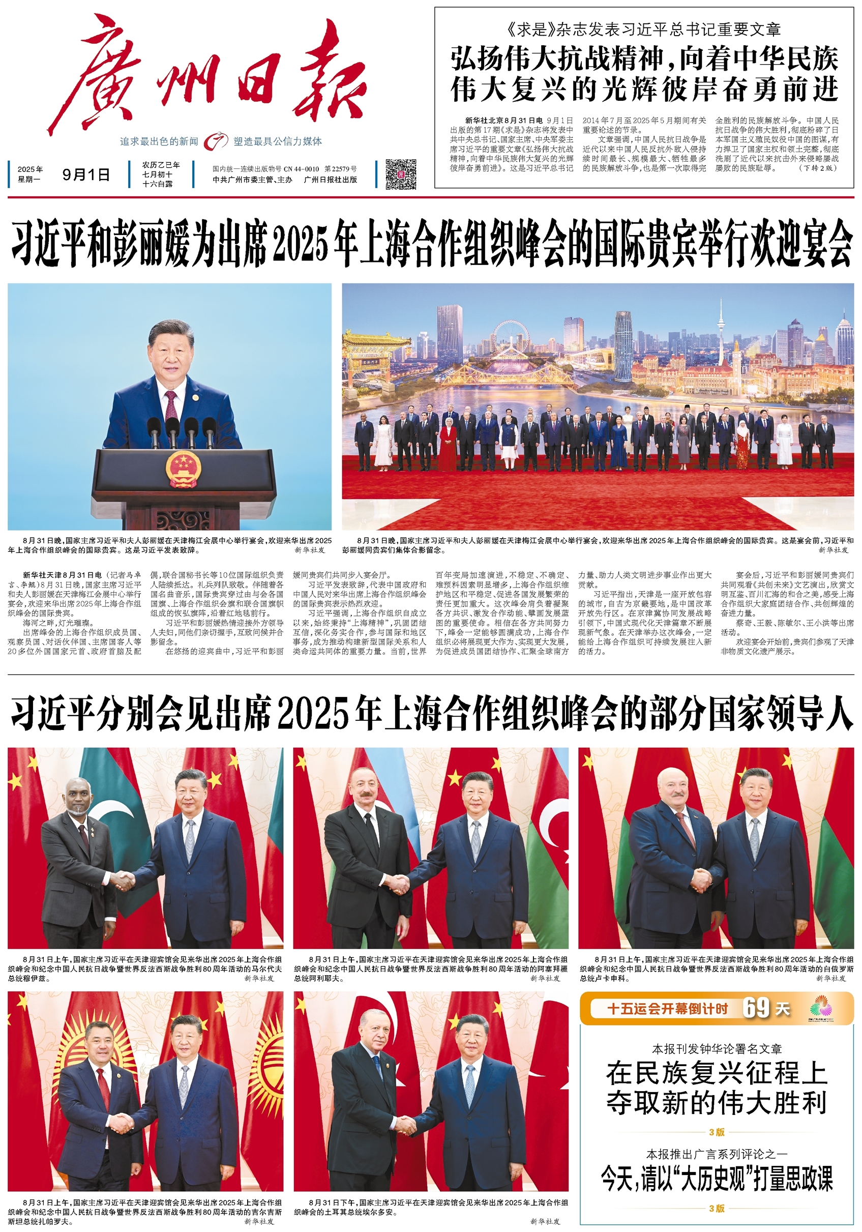 新华社北京8月31日电 9月1日出版的第17期《求是》杂志将发表中共中央总书记、国家主席、中央军委主席习近平的重要文章《弘扬伟大抗战精神,向着中华民族伟大复兴的光辉彼岸奋勇前进》。这是习近平总书记2014年7月至2025年5月期间有关重要论述的节录。