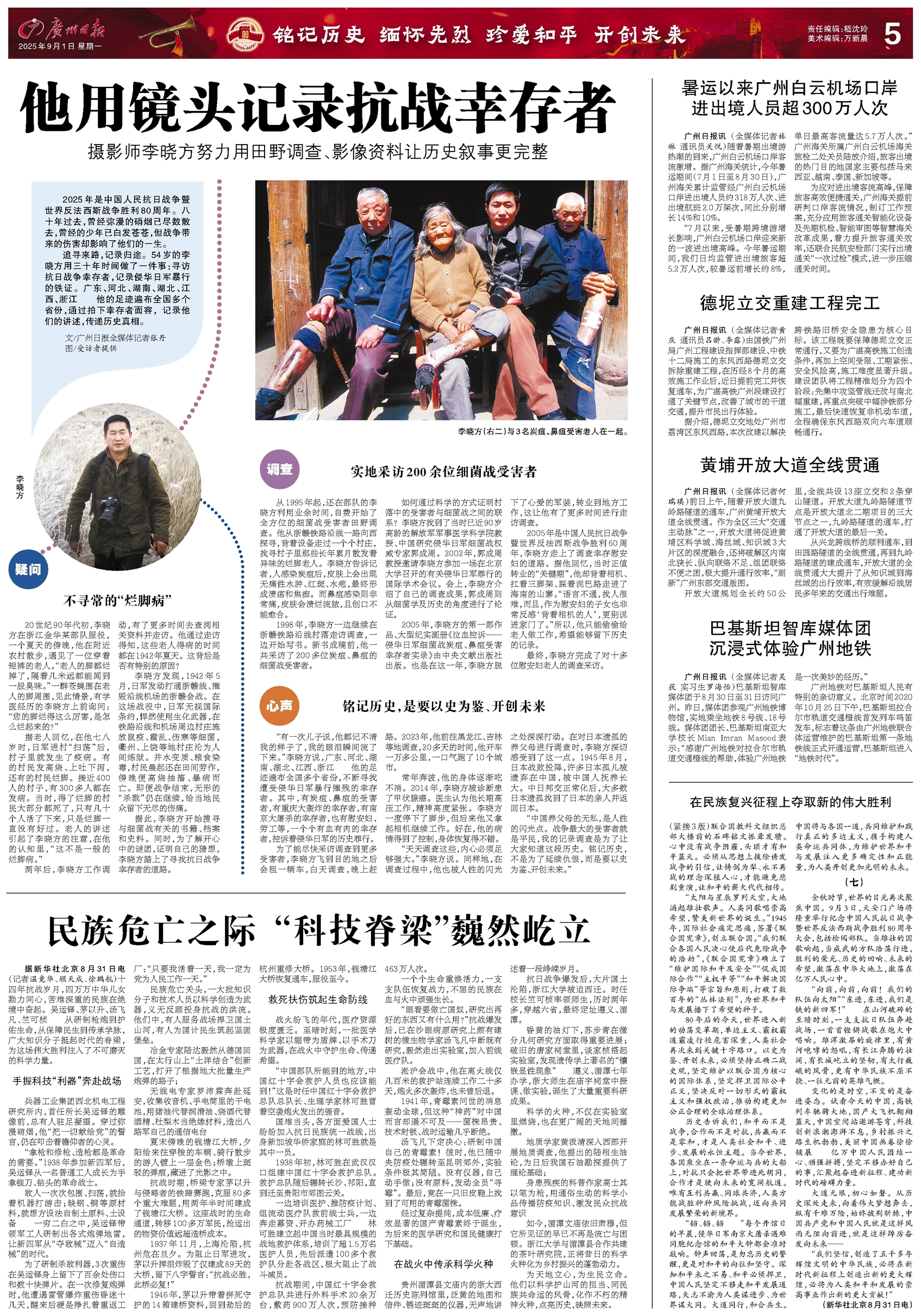 - 民族危亡之际 “科技脊梁”巍然屹立 据新华社北京8月31日电 (记者温竞华、顾天成、徐鹏航)十四年抗战岁月,四万万中华儿女勠力同心,苦难深重的民族在绝境中奋起。吴运铎、茅以升、汤飞凡、竺可桢……从研制枪炮到护佑生命,从保障民生到传承