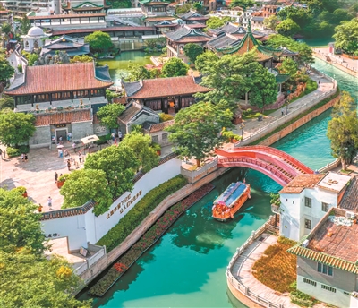 今年暑期,西关永庆坊旅游区迎来356.4万人次游客高峰,再一次证明这个广州最火老街区的文旅新活力;对岸,聚龙湾高端商业“双太古”正在火热建设中,为首期年底亮相冲刺进度。