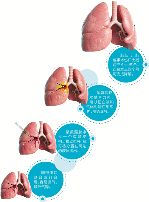 昔日肺部手术痛点 缝合钉合漏气 医用胶粘不牢