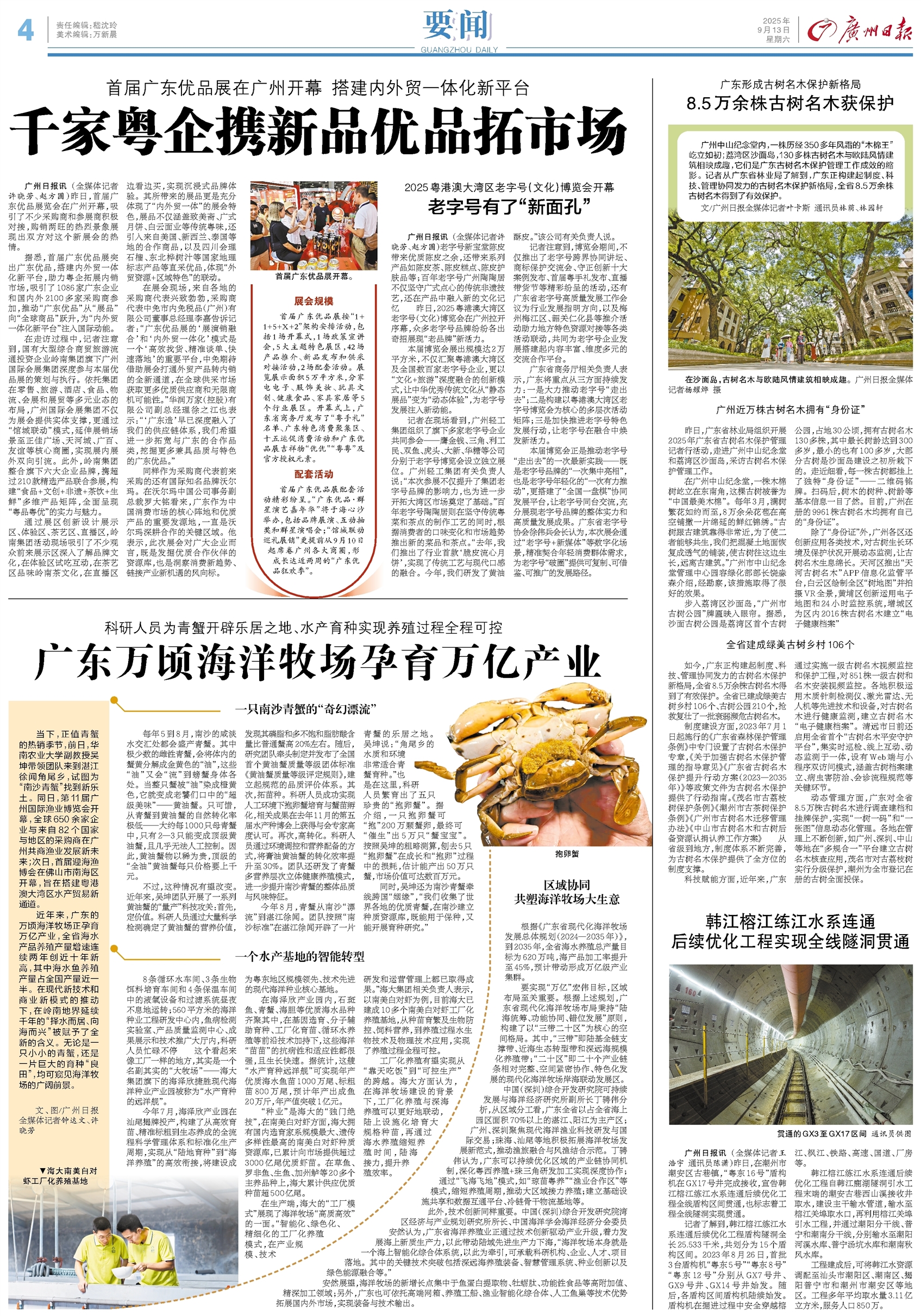 此外,技术创新同样重要。中国(深圳)综合开发研究院湾区经济与产业规划研究所所长、中国海洋学会海洋经济分会委员安然认为,广东省海洋养殖业正通过技术创新驱动产业升级,着力发展海上新质生产力,以此带动陆域先进生产力下海,“海洋牧场本身就是一个海上智能化综合体系统,以此为牵引,可承载科研机构、企业、人才、项目落地。其中的关键技术突破包括深远海养殖装备、智慧管理系统、种业创新以及绿色能源融合等。”