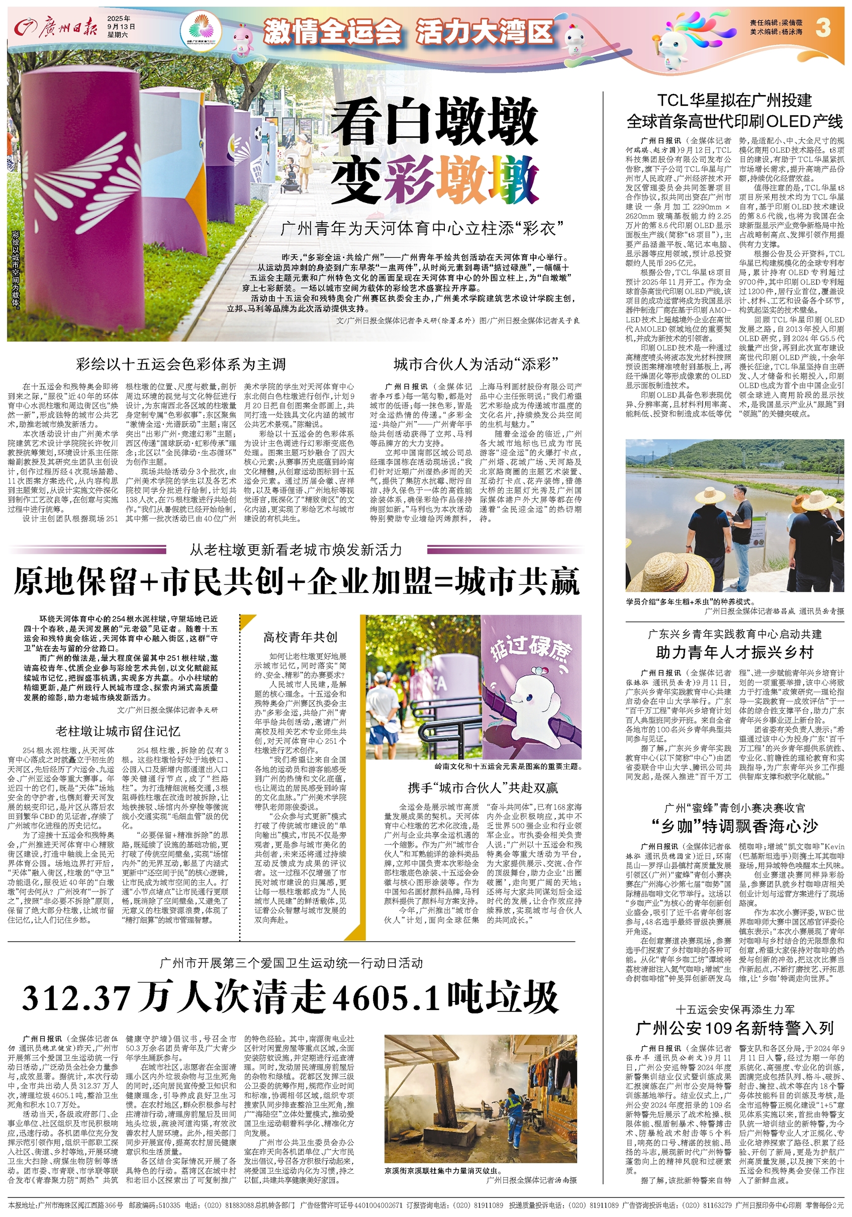 - 看白墩墩变彩墩墩 昨天,“多彩全运·共绘广州”——广州青年手绘共创活动在天河体育中心举行。从运动员冲刺的身姿到广东早茶“一盅两件”,从时尚元素到粤语“掂过碌蔗”,一幅幅十五运会主题元素和广州特色文化的画面呈现在天