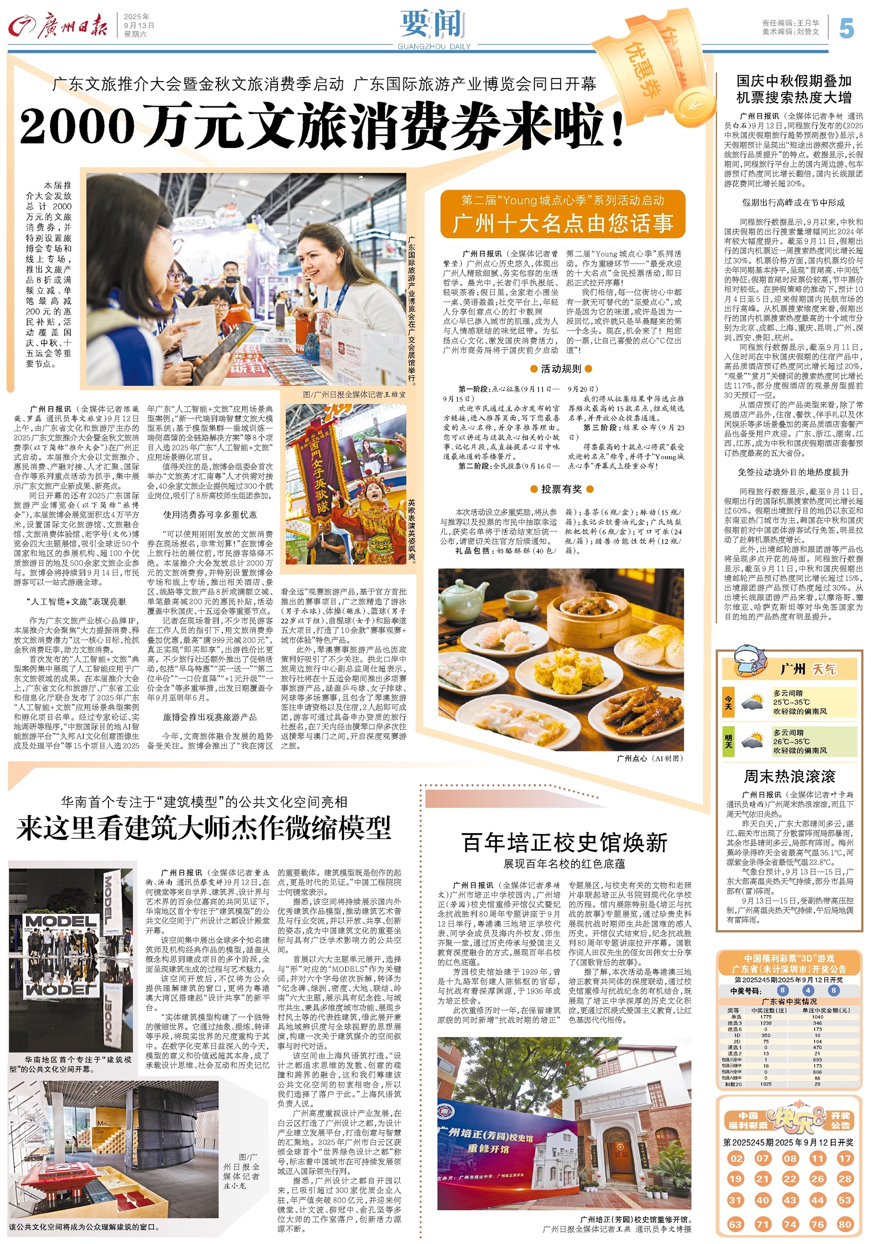 - 2000万元文旅消费券来啦! 本届推介大会发放总计2000万元的文旅消费券,并特别设置旅博会专场和线上专场,推出文旅产品8折或满额立减、单笔最高减200元的惠民补贴,活动覆盖国庆、中秋、十五运会等重要节点。 广州日报讯