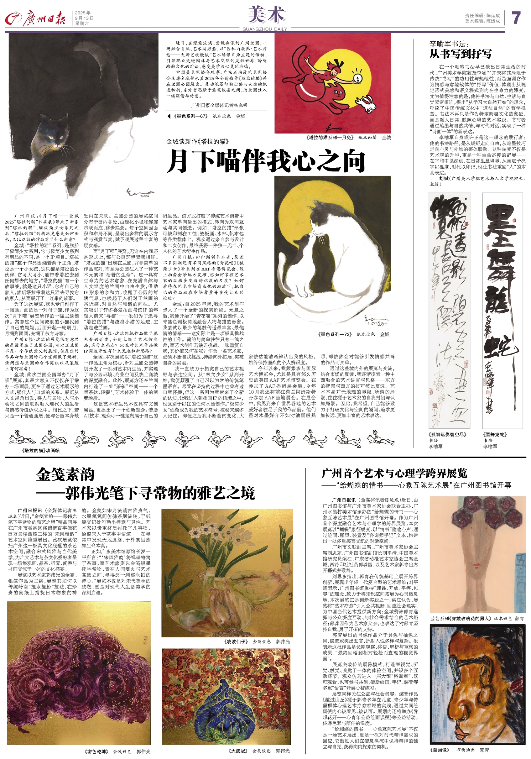 - 广州首个艺术与心理学跨界展览 广州日报讯 (全媒体记者陈运成)近日,由广州图书馆与广州市美术家协会联合主办、广州水墨村美术馆承办的“给蝴蝶的情书——心象互陈艺术展”在广州图书馆开幕。作为广州首个深度融合艺术与心理学的跨界展览