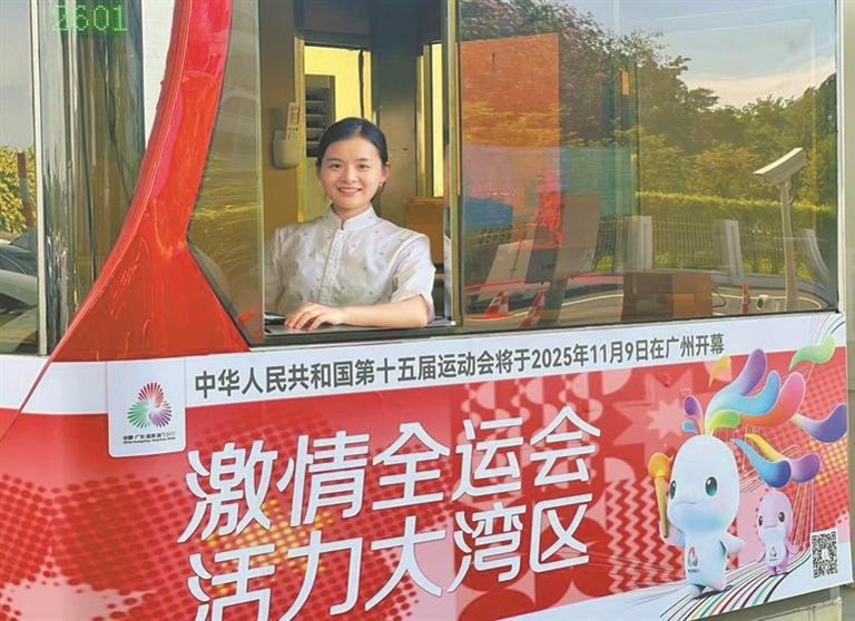 26日,记者沿着机场高速“一镜到底”沉浸式探访:高速主线上,31个主线情报板滚动播放宣传标语,430组运动会道旗整齐地悬挂在路旁灯柱上,形成连贯的视觉引导。在三元里、机场等收费站,智能无人收费设备“好易投”已贴上十五运会标识,收费亭身上也张贴了十五运会宣传内容,智能设备变身“宣传小站”;机场站设置的两对全运会吉祥物憨态可掬,让来宾一出机场便感受到运动会的氛围。工作人员表示,时花布置也将随赛事进程在10月、11月两次更新,持续拉满生机勃勃的迎宾氛围。