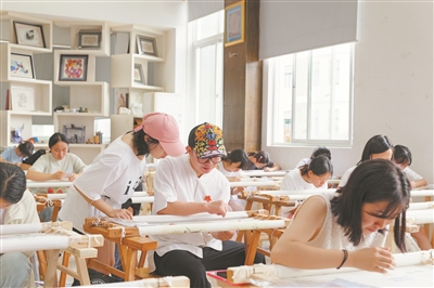以往,广绣大多在家族成员、师徒之间口口相传、手把手教,这在新时代渐渐显现出“从业者老龄化、新生代不足”“会绣不会说、传授面不广”的被动局面。王新元很早意识到这一点,他建立广绣传承基地,持续开设广绣兴趣班、基础班,如今已带动400多位绣娘就业。此外,他带出80多名社会班的徒弟、100多名职业院校学生,推动更多有知识、有水平的年轻人加入进来,让广绣传承有了生力军。