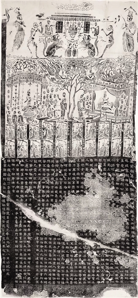 此碑高约四米、厚约0.3米,体形硕大。刊刻于北魏永熙二年,至东魏武定元年完成,耗时十年之功,造像巧夺天工,被誉为北朝造像碑之冠。