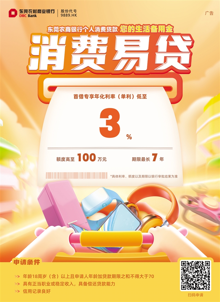 东莞农村商业银行表示,欢迎广大市民及游客持东莞农村商业银行借记卡(含社保卡)或信用卡踊跃参与,乐享优惠,畅享消费。更多活动详情可通过东莞农村商业银行微信公众号、各营业网点及合作商户宣传物料获取。(广告)