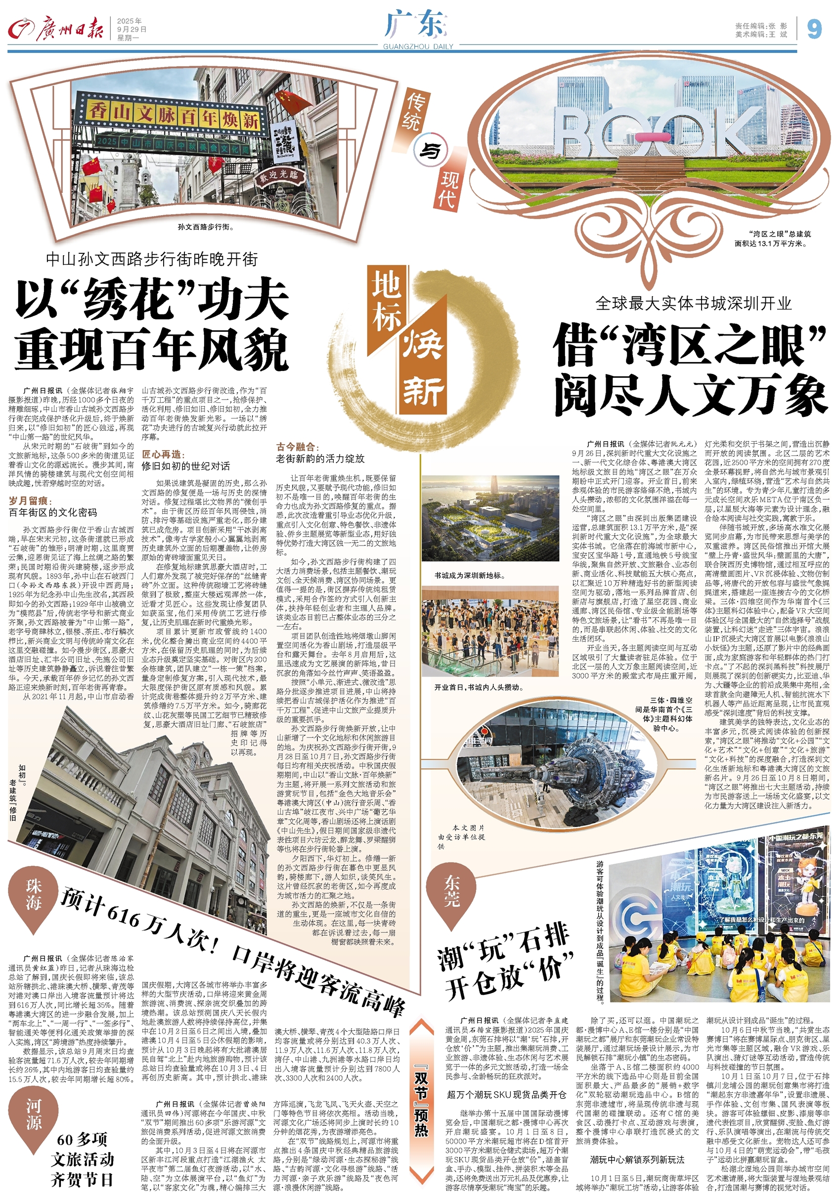建筑美学的独特表达,文化业态的丰富多元,沉浸式阅读体验的创新探索,“湾区之眼”将推动“文化+公园”“文化+艺术”“文化+创意”“文化+旅游”“文化+科技”的深度融合,打造深圳文化生活新地标和粤港澳大湾区的文旅新名片。9月26日至10月8日期间,“湾区之眼”将推出七大主题活动,持续为市民游客送上一场场文化盛宴,以文化力量为大湾区建设注入新活力。