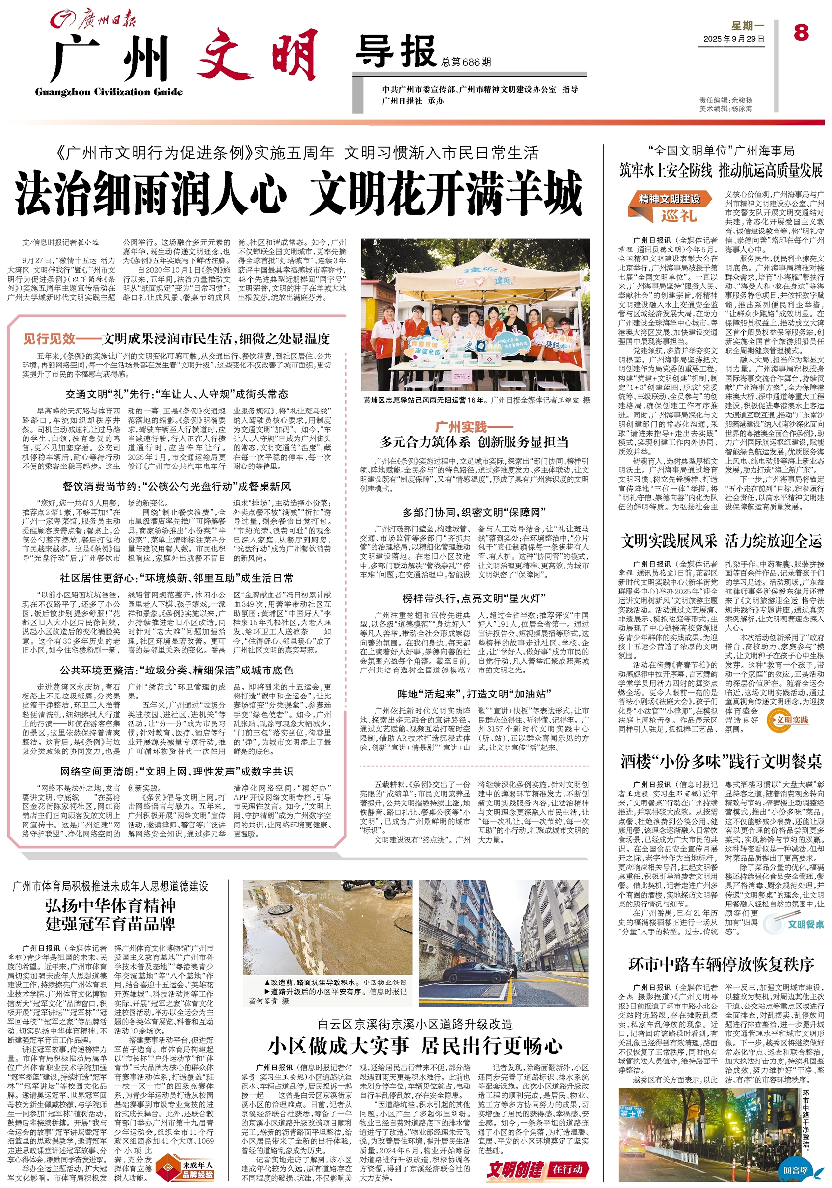 - 法治细雨润人心 文明花开满羊城 文/信息时报记者崔小远 9月27日,“激情十五运 活力大湾区 文明伴我行”暨《广州市文明行为促进条例》(以下简称《条例》)实施五周年主题宣传活动在广州大学城新时代文明实践主题公园举行。这场融合