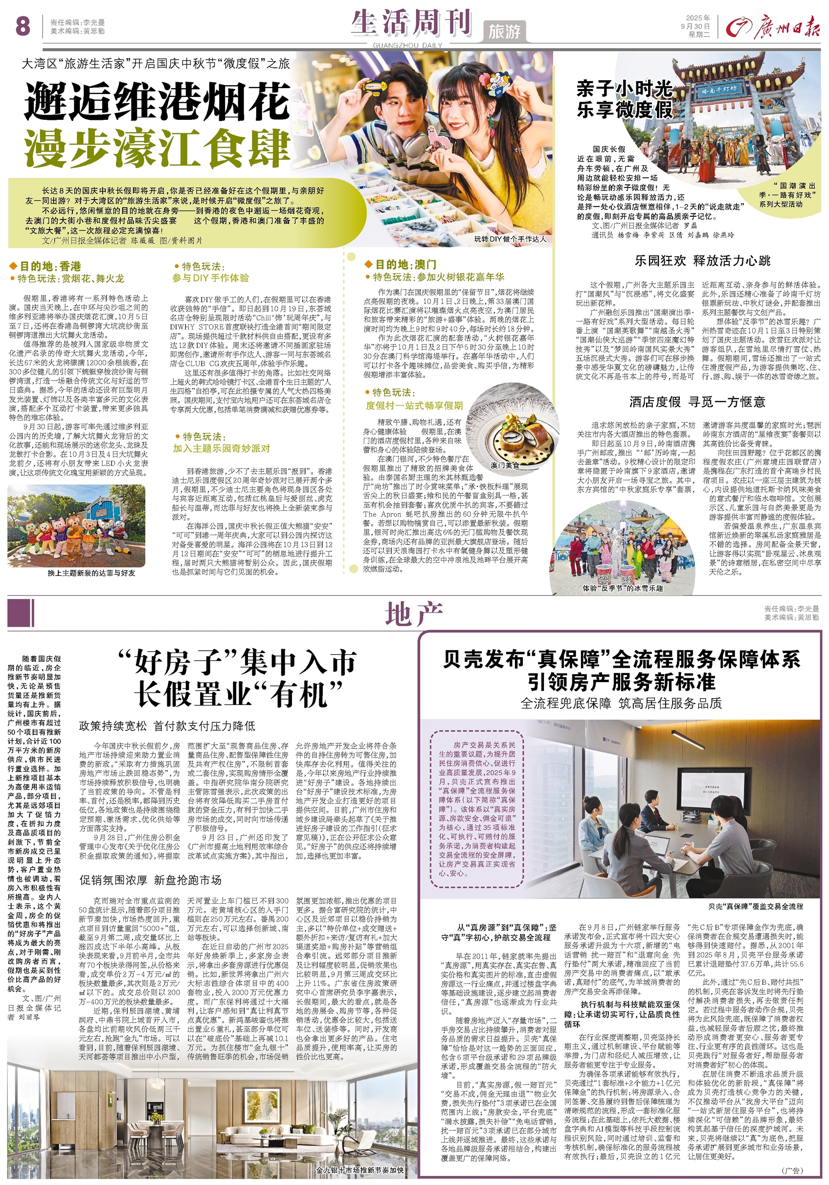 - “好房子”集中入市 长假置业“有机” 随着国庆假期的临近,房企推新节奏明显加快,无论是预售货量还是推新货量均有上升。据统计,国庆前后,广州楼市有超过50个项目有推新计划,合计近100万平方米的新房供应,供市民进行置业选择。加上新推项目