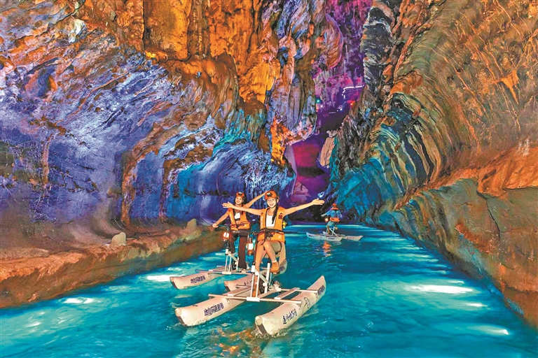 连州地下河又搞新花样啦,全新的“漂浮飞艇”水上自行车探险项目已开启试运营。游客化身地心探险家的机会来了,在全长1500米的地下河里往返游玩,近距离观赏两侧神秘瑰丽的钟乳石,邂逅溶洞瀑布群,打卡镇洞之宝“寿星祈福”,穿行于梦幻般的冰沁蓝河道时,那份由眼入心的清凉格外震撼。游玩过后,大家可以入住全新升级后的连州大酒店。