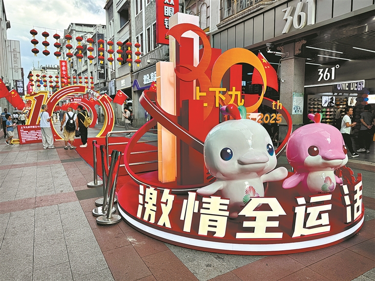今年的国庆节,恰逢在粤港澳举行的第十五届全国运动会筹备工作进入冲刺阶段。体育的热潮与节日的气氛相互映衬,让城市更显动感。走在广州的大街小巷,随处可见全运会的元素:倒计时装置、运动标识,还有吉祥物“喜洋洋”和“乐融融”。它们成为节日风景的一部分,也点燃了市民心中的期待与自豪。
