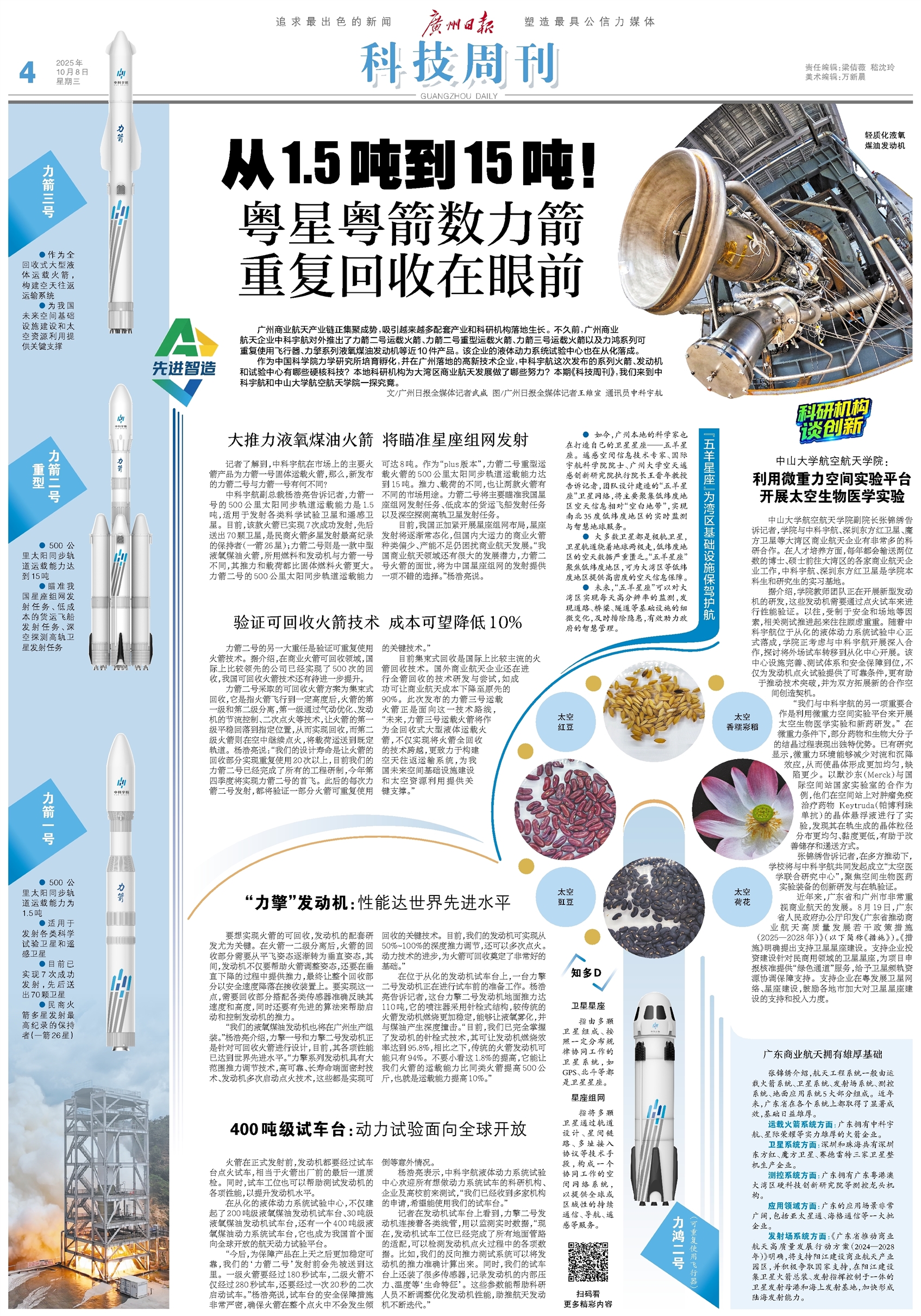 先进智造 广州商业航天产业链正集聚成势,吸引越来越多配套产业和科研机构落地生长。不久前,广州商业航天企业中科宇航对外推出了力箭二号运载火箭、力箭二号重型运载火箭、力箭三号运载火箭以及力鸿系