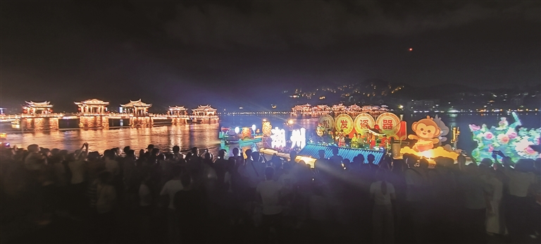 夜色下的广东则上演了另一番精彩。在东莞可园博物馆,青砖黛瓦之间,游人提着灯笼穿行于百年园林,猜灯谜、放花灯、逛游园会,仿佛一脚踏入了张爱玲笔下的月光里,亲身体验着岭南中秋的雅致韵味。在潮州,粤东首部非遗沉浸式舞台剧《大潮归来·入梦潮州》,“红头船”的意象在光影中破浪而来。