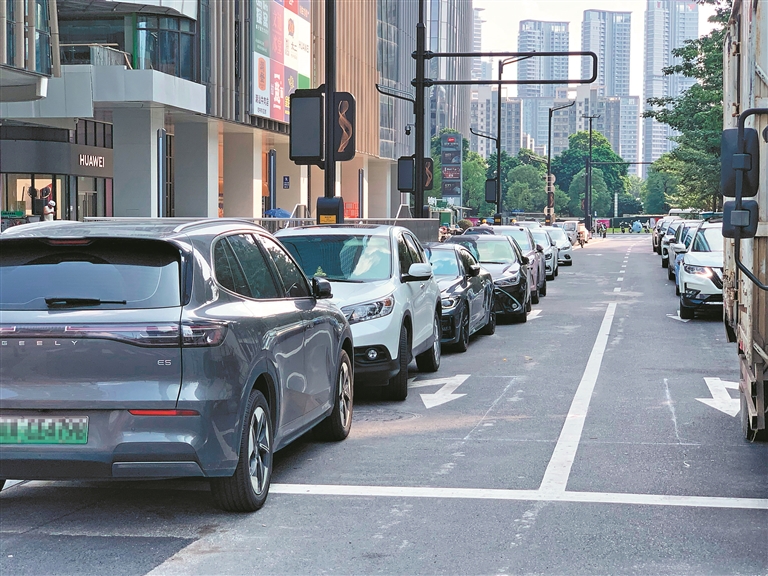 广州日报讯 (全媒体记者全杰 摄影报道)随着位于海珠区的广东琶洲人工智能与数字经济试验区发展日渐加快,其市容环境建设力度也在加强。但部分市民反映,区内主要道路违停现象较多,不仅影响了美丽市容,也对交通出行带来影响。