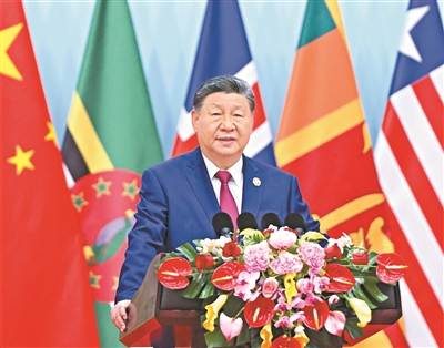 金秋时节,天朗气清。国家会议中心会场内,各国国旗和联合国旗帜组成恢弘旗阵。