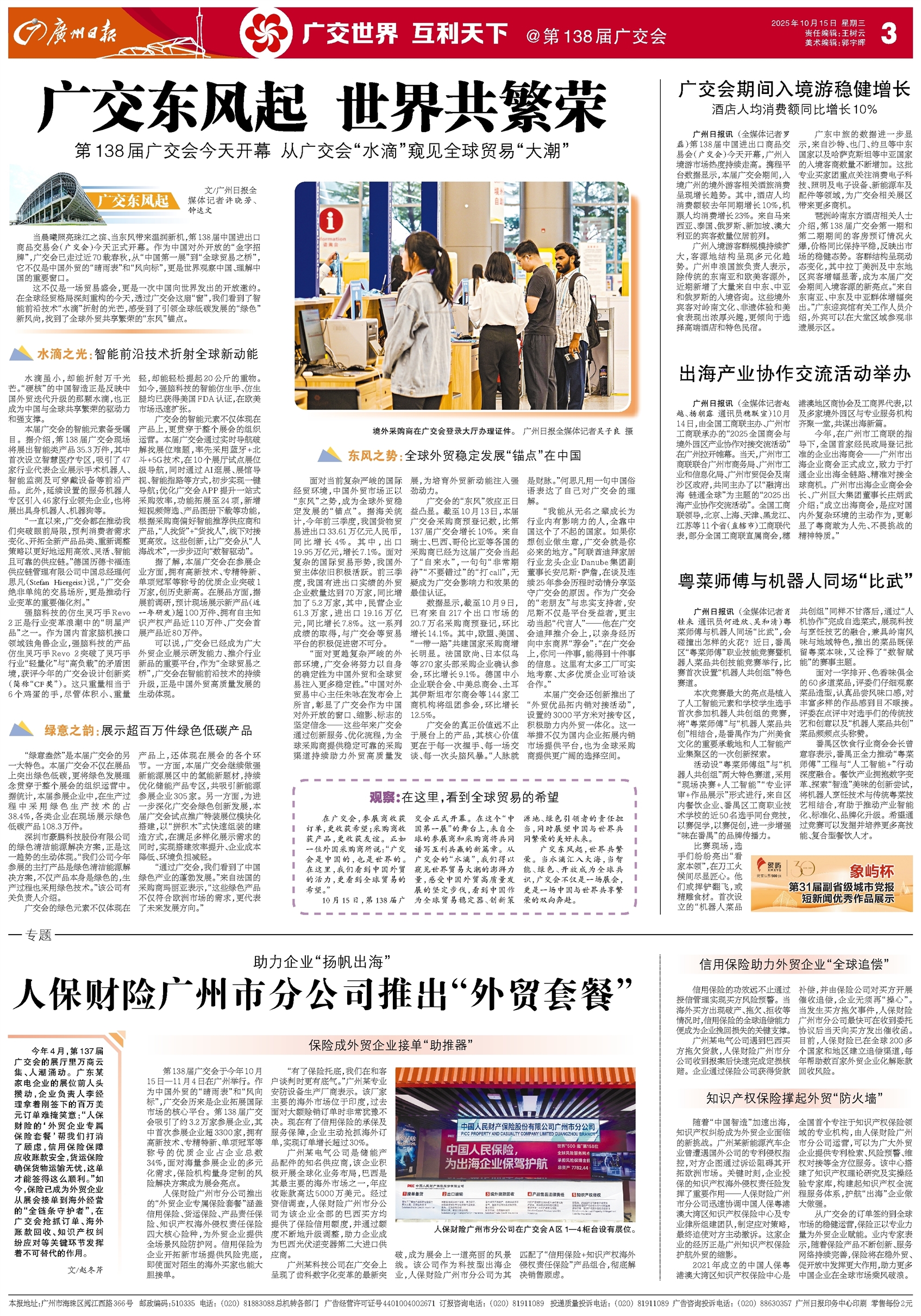 - 人保财险广州市分公司推出“外贸套餐” 今年4月,第137届广交会的展厅里万商云集、人潮涌动。广东某家电企业的展位前人头攒动,企业负责人李经理拿着刚签下的百万美元订单难掩笑意:“人保财险的‘外贸企业专属保险套餐’帮我们打消了顾虑,信用保