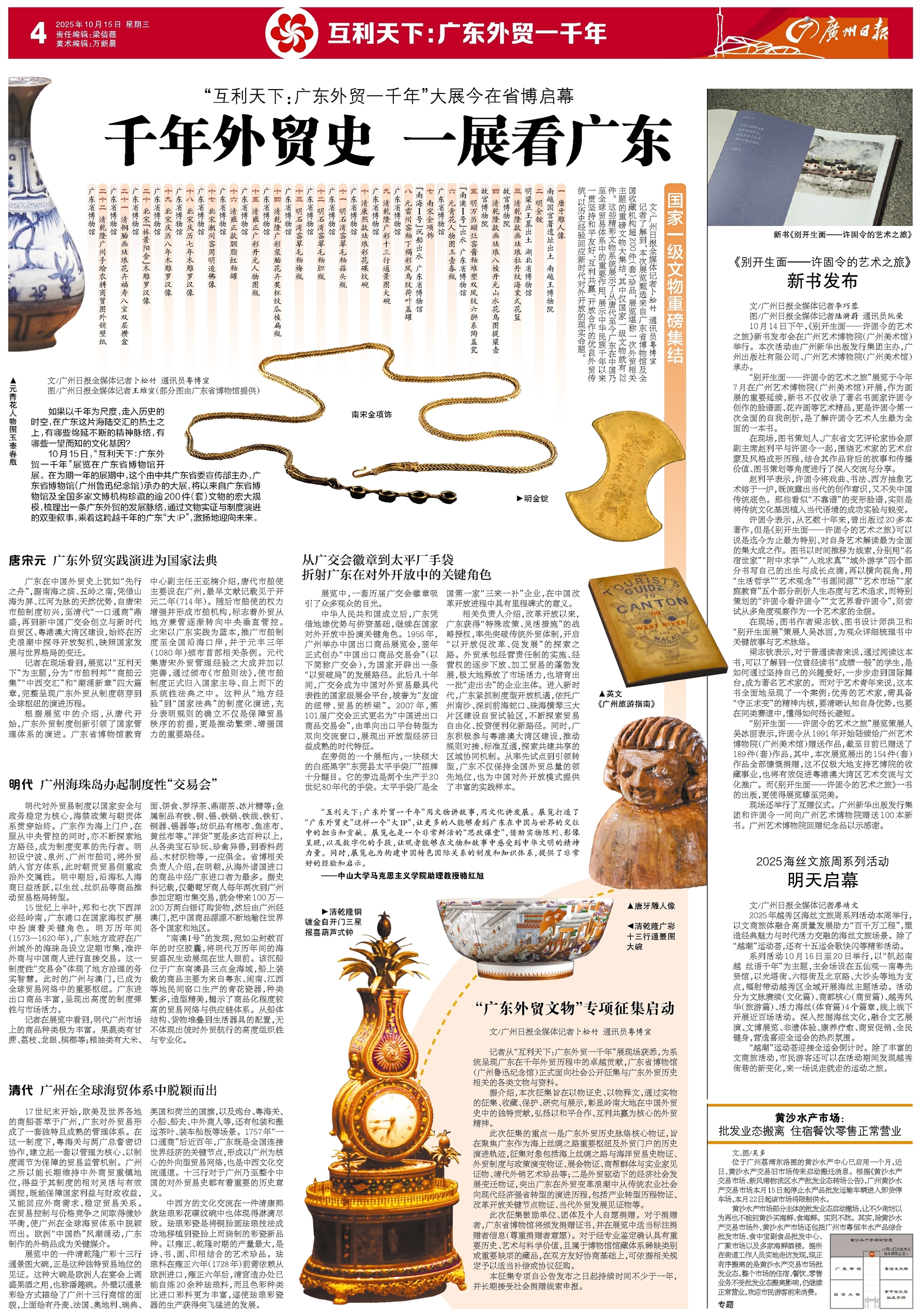 - “广东外贸文物”专项征集启动 文/广州日报全媒体记者卜松竹 通讯员粤博宣 记者从“互利天下:广东外贸一千年”展现场获悉,为系统呈现广东在千年外贸历程中的卓越贡献,广东省博物馆(广州鲁迅纪念馆)正式面向社会公开征集与广东外贸