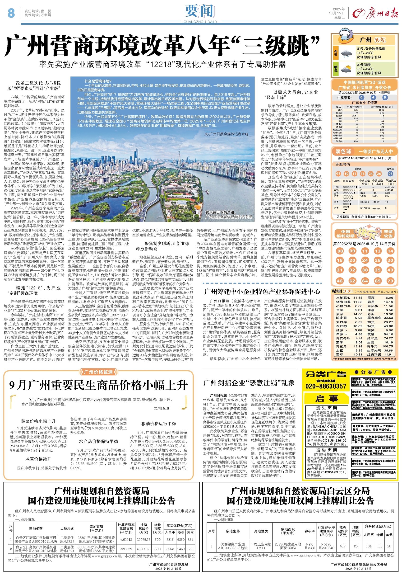 - 广州营商环境改革八年“三级跳” 什么是营商环境? 一个生动的比喻是:它如同阳光、空气、水和土壤,是企业生根发芽、茁壮成长的必需养分。一座城市拼经济,说到底,拼的正是营商环境。 那么,广州如何“拼”?拼的是“刀刃向内”的改