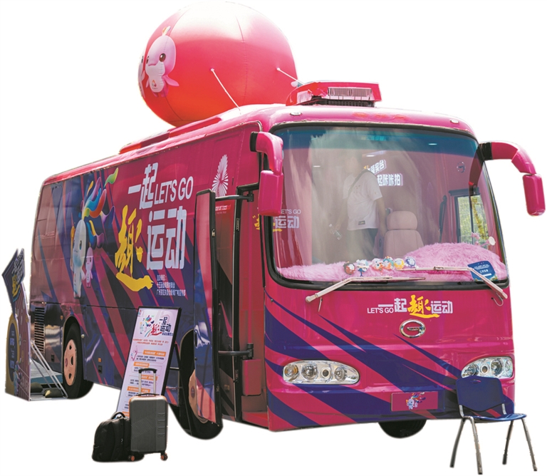 广州日报讯 (全媒体记者何瑞琪、何钻莹摄影报道)想近距离打卡炫酷的全运主题巴士?想和街舞大叔同台“炸街”?想在旱地冰壶赢回全运会吉祥物盲盒?机会来了!