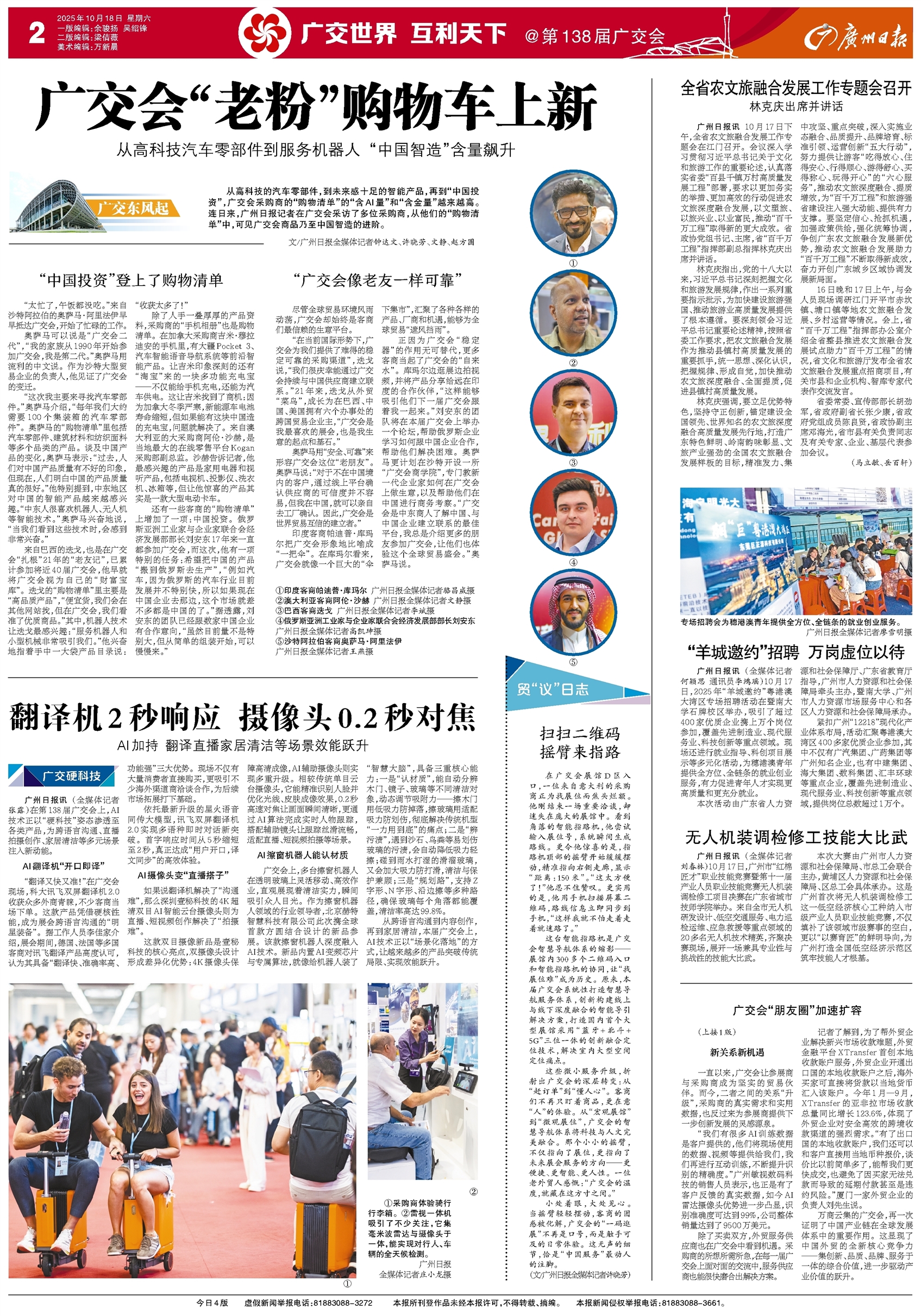 - 广交会“老粉”购物车上新 广交东风起 从高科技的汽车零部件,到未来感十足的智能产品,再到“中国投资”,广交会采购商的“购物清单”的“含AI量”和“含金量”越来越高。连日来,广州日报记者在广交会采访了多位采购商,从他