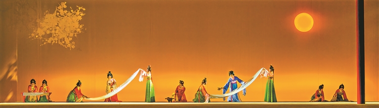 演出现场,记者看到,《双绣缘》的舞台仿佛是一幅流动的唐代画卷,导演徐春兰以“每一帧都是画”为艺术追求,舞美设计罗江涛与灯光设计邢辛从唐代名画《捣练图》中汲取灵感,以柔和的色调、雅致的构图,营造出大气典雅、温馨唯美的盛唐气象。