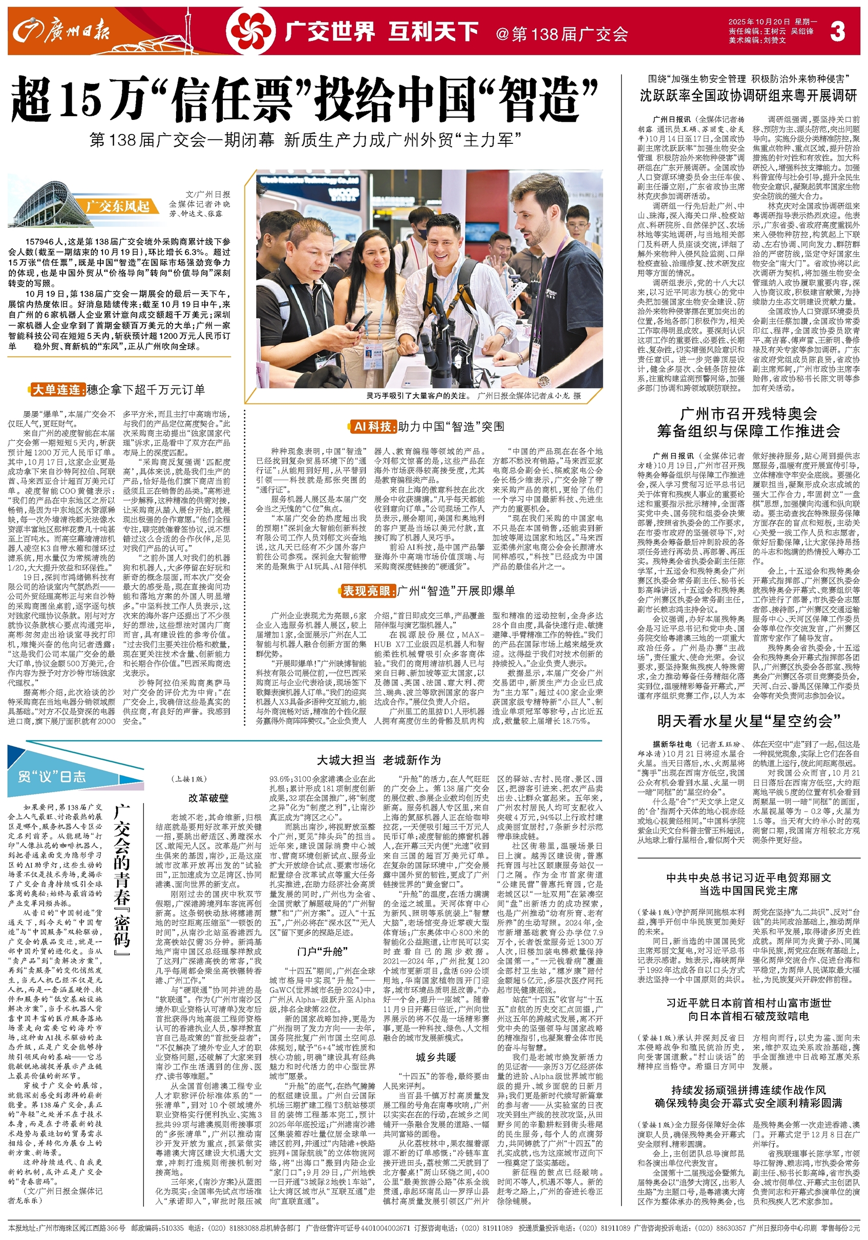 - 超15万“信任票”投给中国“智造” 广交东风起 文/广州日报全媒体记者许晓芳、钟达文、张露 157946人,这是第138届广交会境外采购商累计线下参会人数(截至一期结束的10月19日),环比增长6.3%。超过15万张“信任票