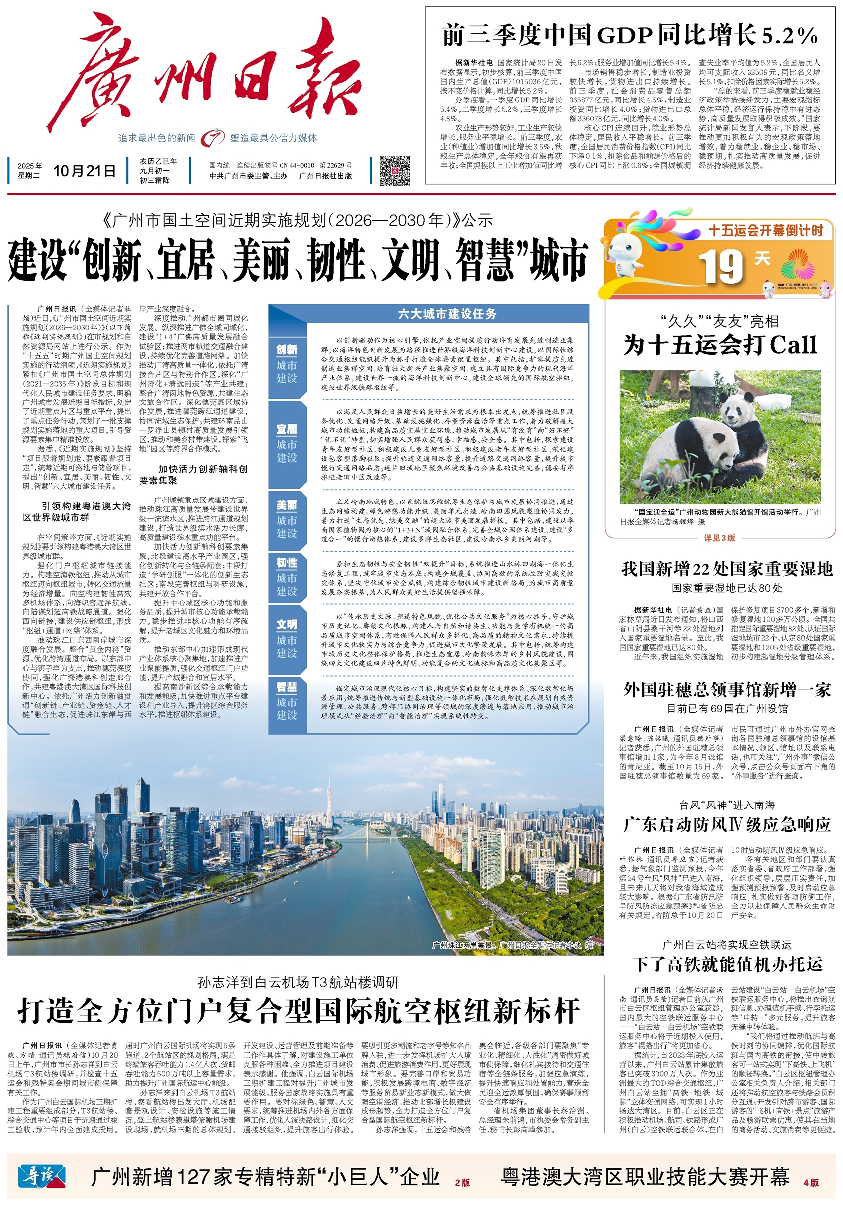 广州日报讯 (全媒体记者杜娟)近日,《广州市国土空间近期实施规划(2026—2030年)》(以下简称《近期实施规划》)在市规划和自然资源局网站上进行公示。作为“十五五”时期广州国土空间规划实施的行动纲领,《近期实施规划》紧扣《广州市国土空间总体规划(2021—2035年)》阶段目标和现代化人民城市建设任务要求,明确广州城市发展近期目标指标,划定了近期重点片区与重点平台,提出了重点任务行动,策划了一批支撑规划实施落地的重大项目,引导资源要素集中精准投放。