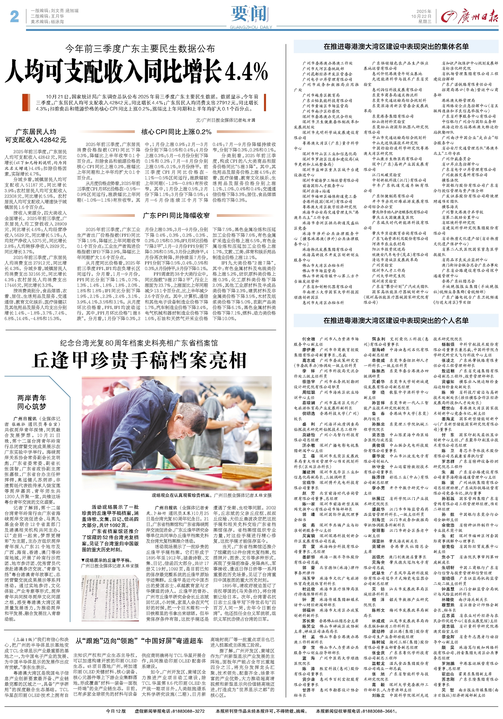 - 丘逢甲珍贵手稿档案亮相 活动现场展示了一批珍贵的丘逢甲手稿档案,涵盖诗歌、文集、日记、信函四大部分,共计1092页。 广东省档案馆还推介了馆藏的52件台湾光复档案,见证了台湾重归中国版图的重大历史时刻。 广州日报