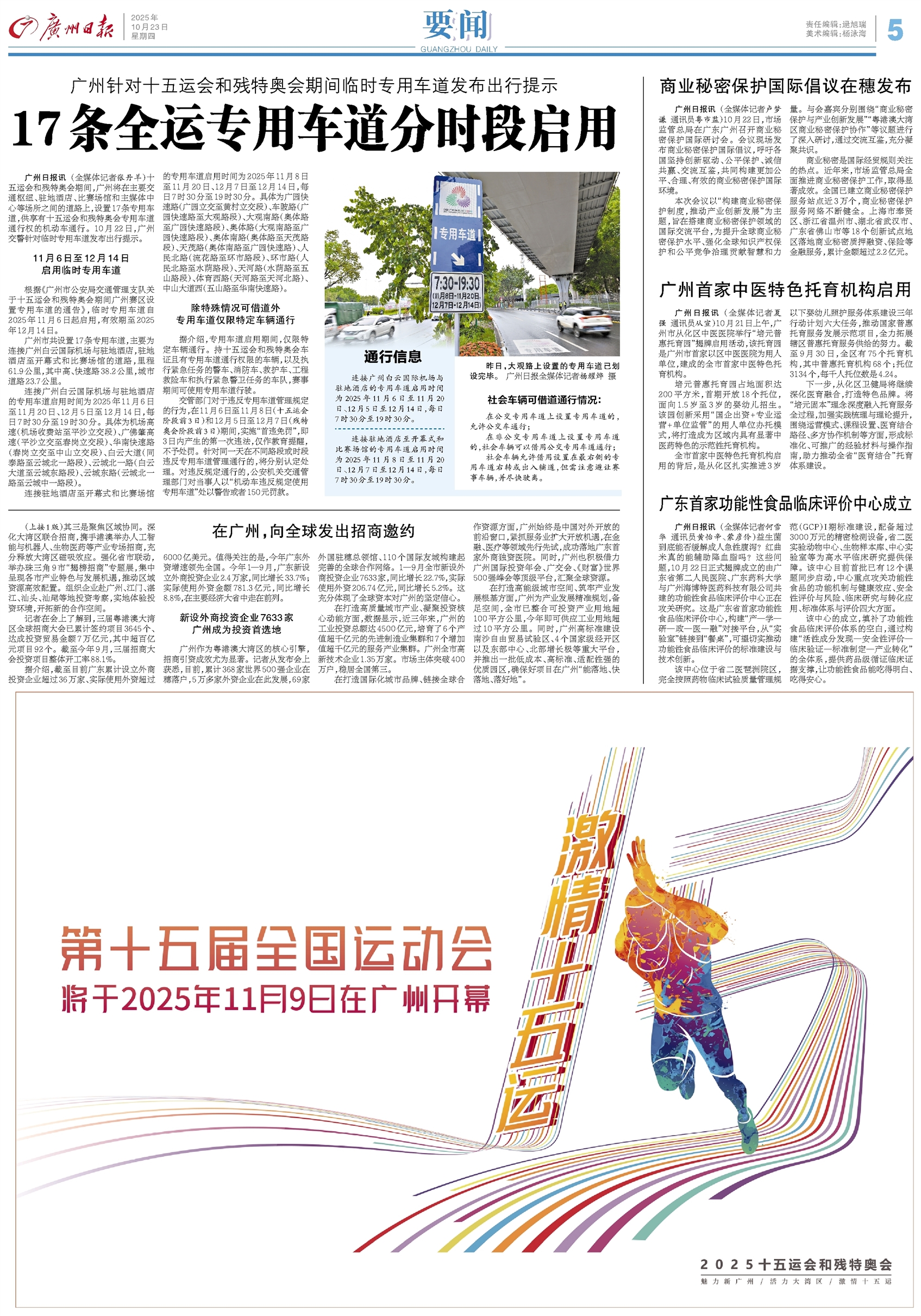 - 17条全运专用车道分时段启用 广州日报讯 (全媒体记者张丹羊)十五运会和残特奥会期间,广州将在主要交通枢纽、驻地酒店、比赛场馆和主媒体中心等场所之间的道路上,设置17条专用车道,供享有十五运会和残特奥会专用车道通行权的机动车通