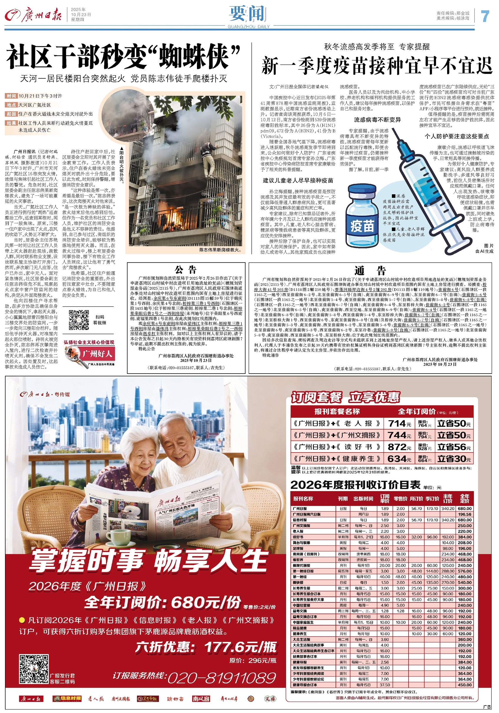 - 新一季度疫苗接种宜早不宜迟 文/广州日报全媒体记者梁超仪 中国疾控中心近日发布《2025年第41周第878期中国流感监测周报》,监测数据显示,近期南方省份流感活动上升。记者查询该周报获悉,10月6日—10月12日,南方省