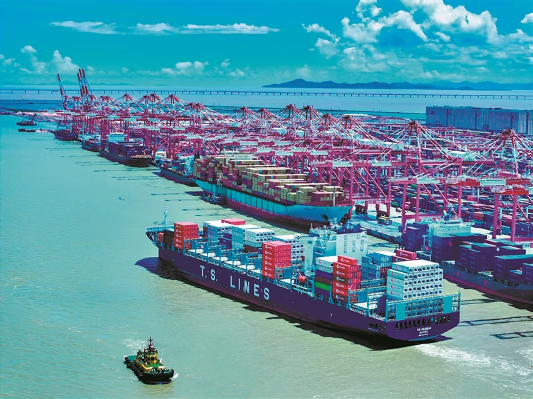 位于南沙区龙穴岛的广州港南沙港区三期码头,正呈现一派繁忙景象——成千上万的集装箱在远程操控技术的调度下高效流转,发往全球各地。该码头布局有4个10万吨级和2个7万吨级集装箱泊位,设计年通过能力高达570万标准箱,足以迎纳全球最大型集装箱船舶。它与广州港南沙港区一、二期工程协同联动,共同构建规模化的现代化港区,已成为广州国际航运枢纽的核心基础设施。