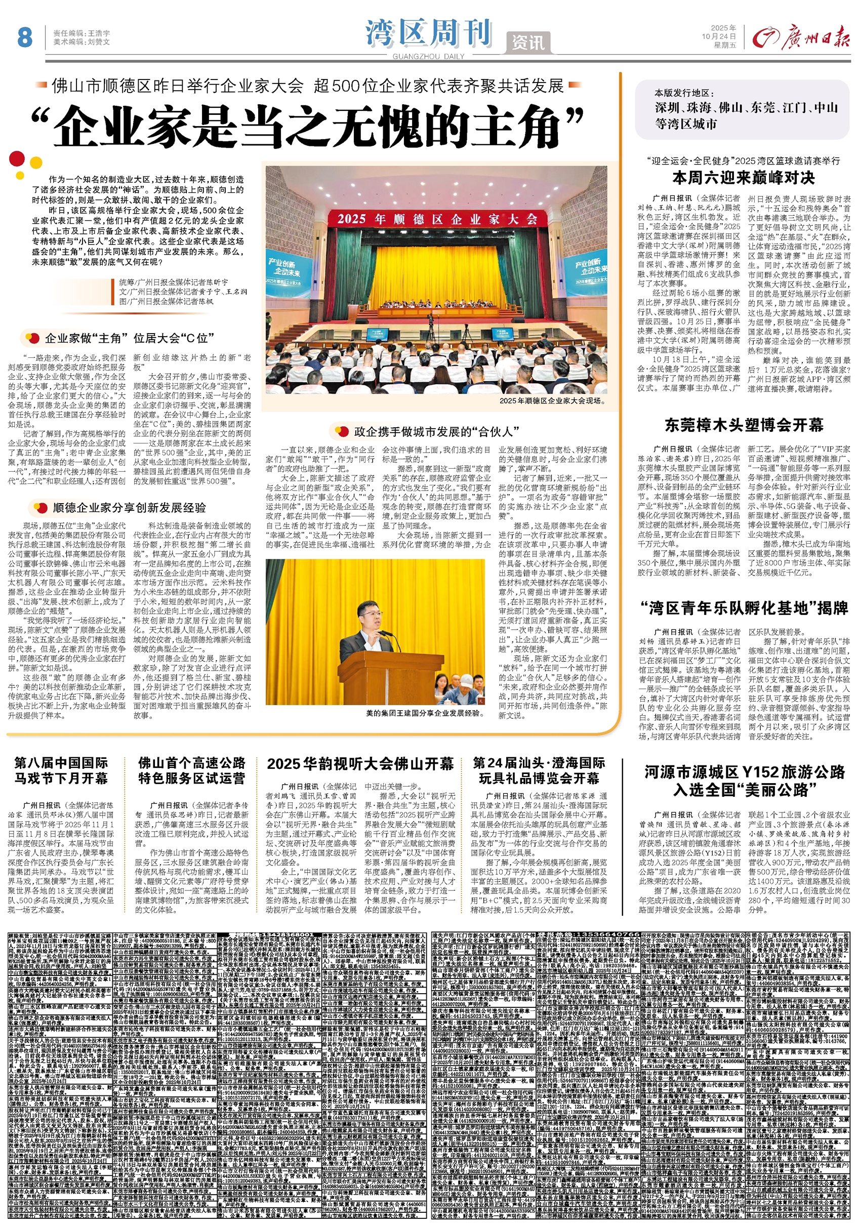 - “企业家是当之无愧的主角” 作为一个知名的制造业大区,过去数十年来,顺德创造了诸多经济社会发展的“神话”。为顺德贴上向前、向上的时代标签的,则是一众敢拼、敢闯、敢干的企业家们。 昨日,该区高规格举行企业家大会,现场,50