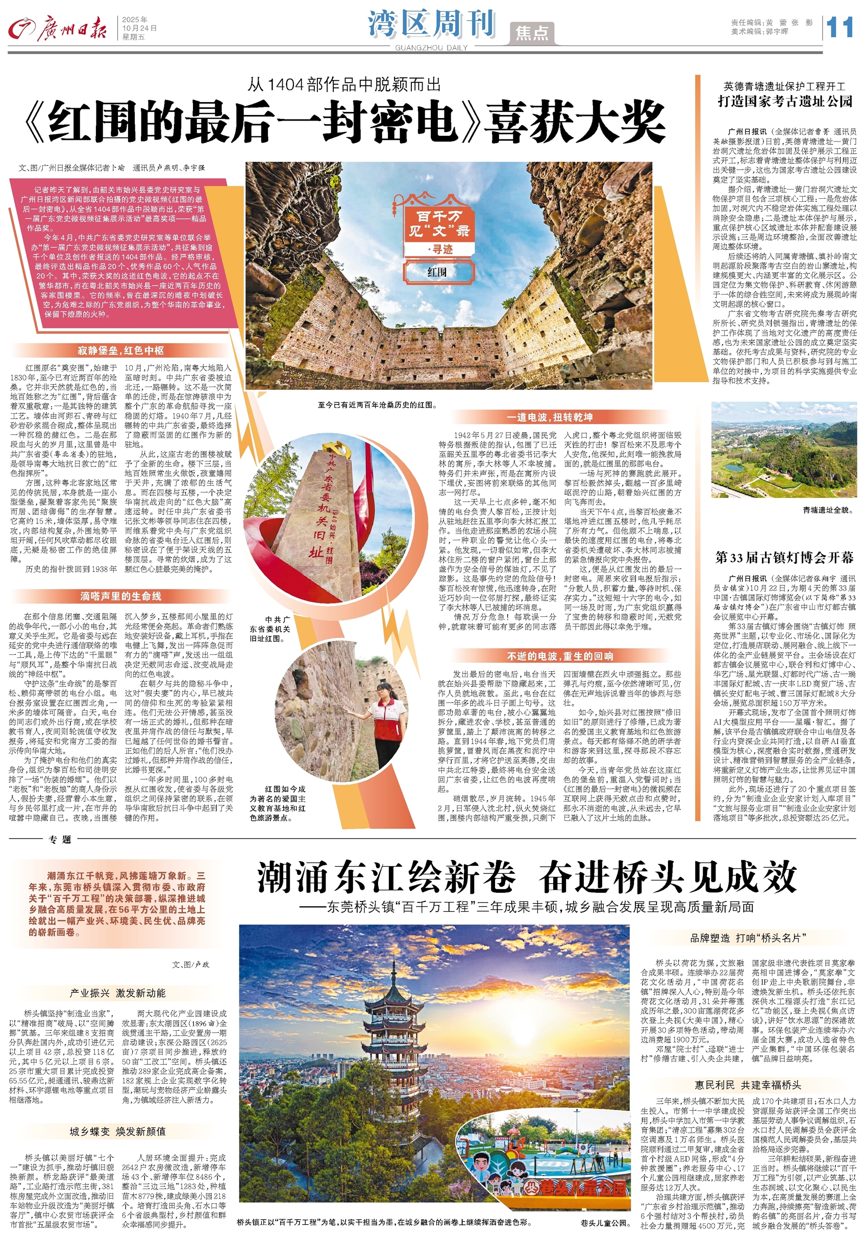 - 《红围的最后一封密电》喜获大奖 文、图/广州日报全媒体记者卜瑜 通讯员卢燕明、李宇强 记者昨天了解到,由韶关市始兴县委党史研究室与广州日报湾区新闻部联合拍摄的党史微视频《红围的最后一封密电》,从全省1404部作品中脱颖