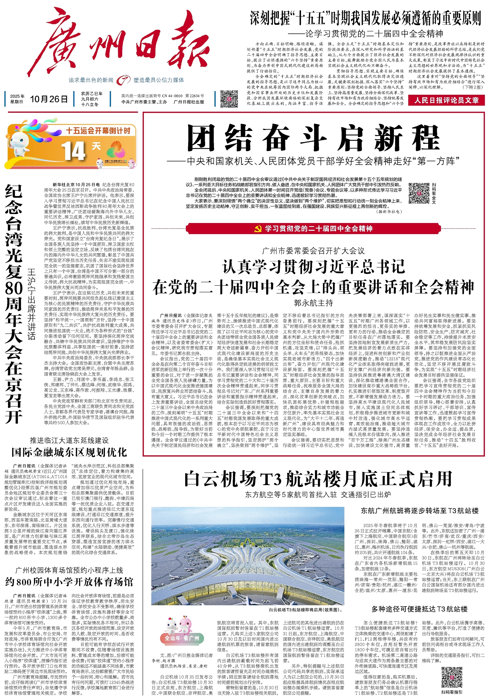 白云机场10月25日发布公告:白云机场T3航站楼10月30日正式启用,东方航空、上海航空、中国联合航空、吉祥航空、奥凯航空将首批入驻。其中,东航国际航班暂时保留在T1航站楼运营。凡购买上述5家航空公司10月30日及以后时间国内进出港航班机票的旅客,请留意航班信息。