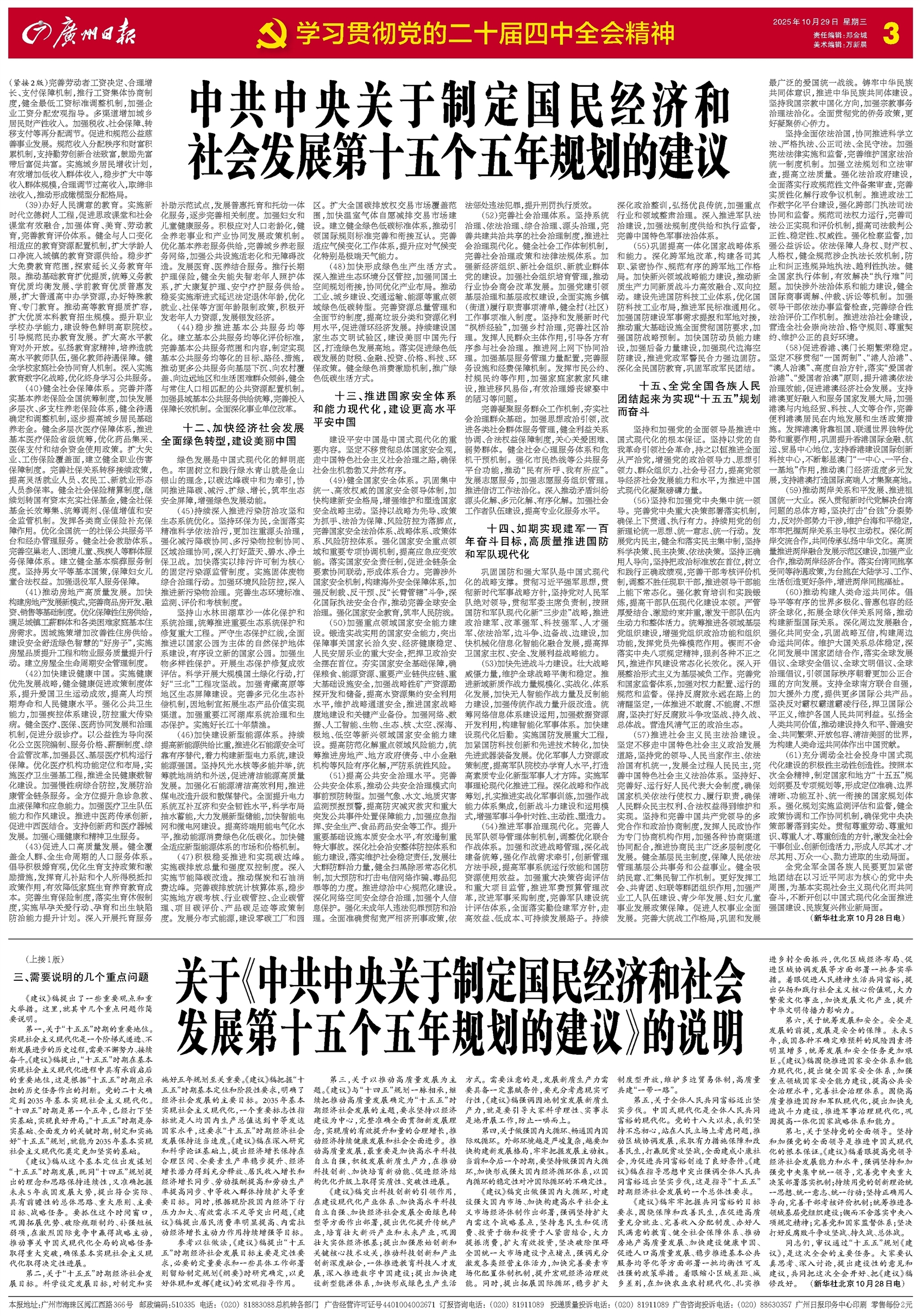 - 关于《中共中央关于制定国民经济和社会发展第十五个五年规划的建议》的说明 (上接1版) 三、需要说明的几个重点问题 《建议》稿提出了一些重要观点和重大举措。这里,就其中几个重点问题作简要说明。 第一,关于“十五五”时期的重要地位。实现社会主义现代化是一个阶梯