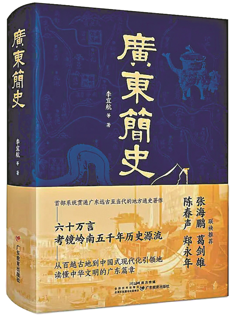 新近出版的《广东简史》充分认识到广东在中国乃至世界的地位,在开篇“前言”中即说:“广东地处中国大陆南端,系环太平洋文化圈的一环。这一坐标,蕴意着作为中国的广东乃至作为世界的广东,在人类历史上具有不容忽视的征表与贡献。”这一恢弘的气势和宽阔的视野,构成了该书写作的重心。由广东省社科联党组书记李宜航领衔,集数十位相关专业领域研究人员组成的课题组,历时三年,先后八易其稿,精心打造的《广东简史》,将广东自远古至当下的历史凝练为60余万字的巨著,甫一出版,就在社会上产生了广泛影响。之所以如此,一是生活在新时代的人们已经养成了读史的社会风气。二是该书不仅突出了“简”史应有的硬核内容,而且将高深的学术研究通俗化,适合社会大众阅读。三是粤港澳大湾区建设如火如荼,这里在历史上属于广东政区管辖。因此,阅读和了解广东历史,就是了解大湾区历史,更能借此了解中国通过海上丝绸之路与世界交流交往的历史。