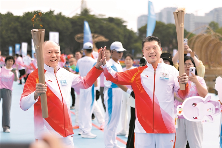 在此次火炬传递深圳站,来自科学、体育、艺术等多个领域的50组火炬手,共同完成了这场接力之旅。