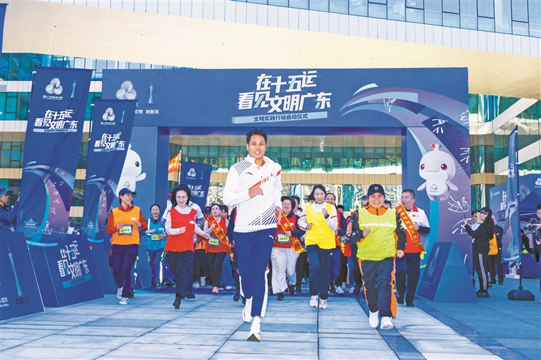 珠江潮涌,文明风劲。昨日,“在十五运,看见文明广东”文明实践行动启动仪式在广州海珠区阅江路“最美7公里”路段举行。本次活动在广东省委宣传部(省文明办)指导下,由广州市委宣传部(市文明办)、海珠区委宣传部联合多个部门共同组织,通过“运动+文明+环保”的创新形式,将十五运会“绿色、共享、开放、廉洁”的理念与广州“文明之城”“志愿之城”的城市特质深度融合,为即将到来的十五运会营造“人人参与、大家共享”的文明社会氛围。